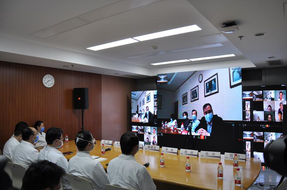 院校党委副书记王云峰作会议发言,代表院校领导班子对奋战在疫情前线的所有“协和学子”予以高度赞扬,充分肯定了阜外医院在此特殊时期举办该项活动的重要意义。