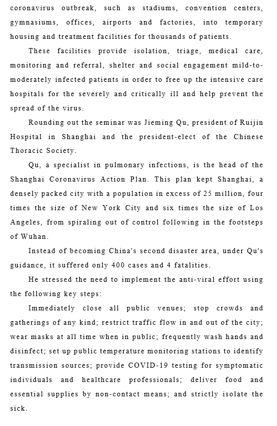 我想借此谈一下疫情下保持国际交流的重要性。其重要性应当无需强调,除非对于抱有某种偏见的人。我就讲一个实例吧。昨天今天美国胸腔医师学会组织了录像两场讲座,都是针对新冠肺炎,受到极大重视。