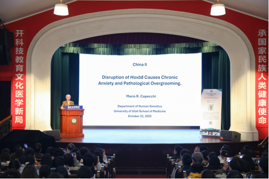 马里奥·卡佩奇院士的报告聚焦缺陷型Hoxb8小胶质细胞与小鼠慢性焦虑及类强迫症行为的关联,首次建立了在基因组特定位点进行精准修饰的技术。该方法孕育了“敲除小鼠”模型,为人类遗传病、肿瘤和神经系统疾病研究奠定了基础,并推动了现代基因治疗与精准医学的发展。