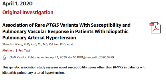 中国医学科学院北京协和医院荆志成研究团队发现PTGIS为全新肺动脉高压遗传相关基因