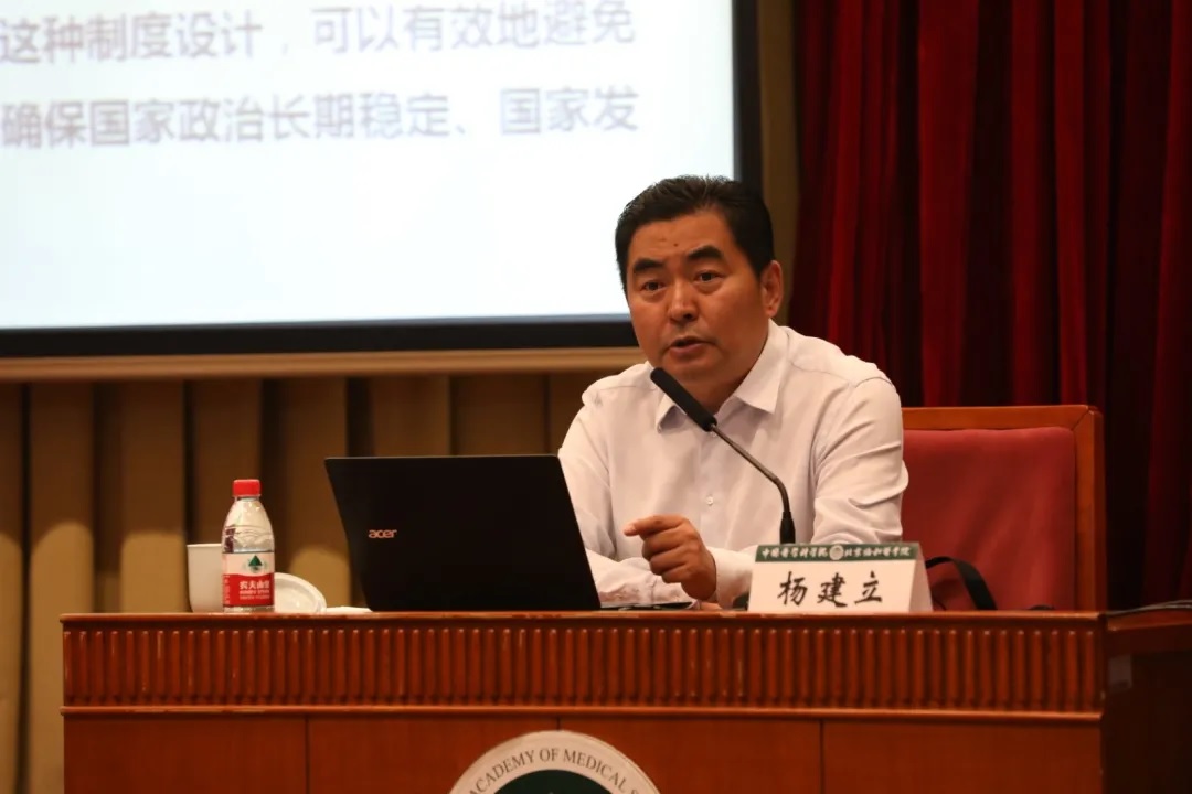 培训邀请国家卫生健康委直属机关党委常务副书记杨建立同志进行授课。杨建立书记以《马克思主义中国化的百年历程》为题,从马克思主义中国化的内涵、第一次历史性飞跃、中国特色社会主义道路的开辟、习近平新时代中国特色社会主义思想等四个方面,系统阐述了中国共产党的百年奋斗与理论创新,授课内容丰富详实,事例鲜活生动,讲授方式灵活幽默,重点突出,讲解透彻。既有理论高度,又有实践深度、知识广度,是本学期院校师生上的第一堂思想政治专业课。