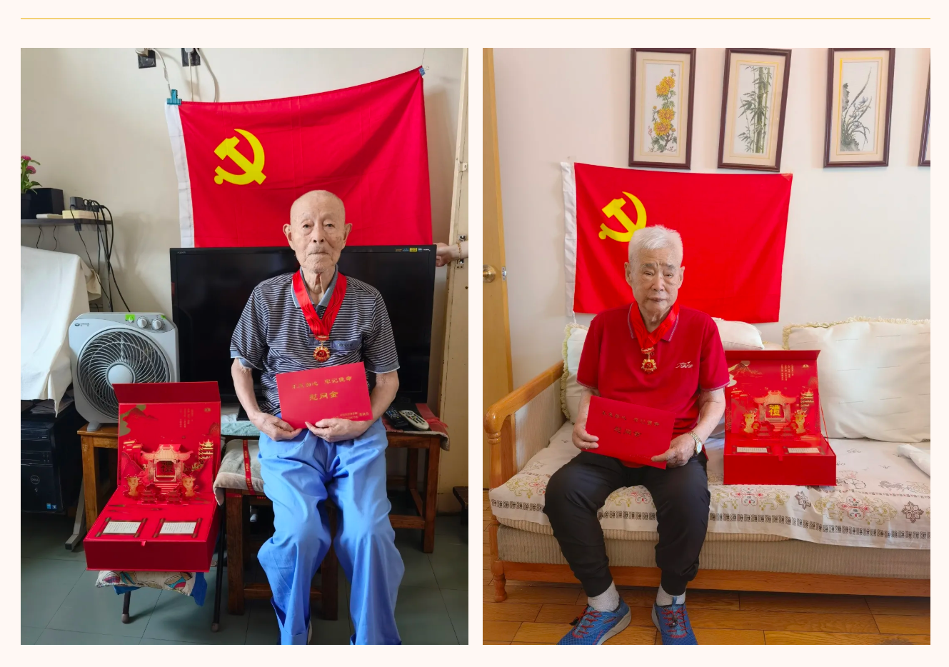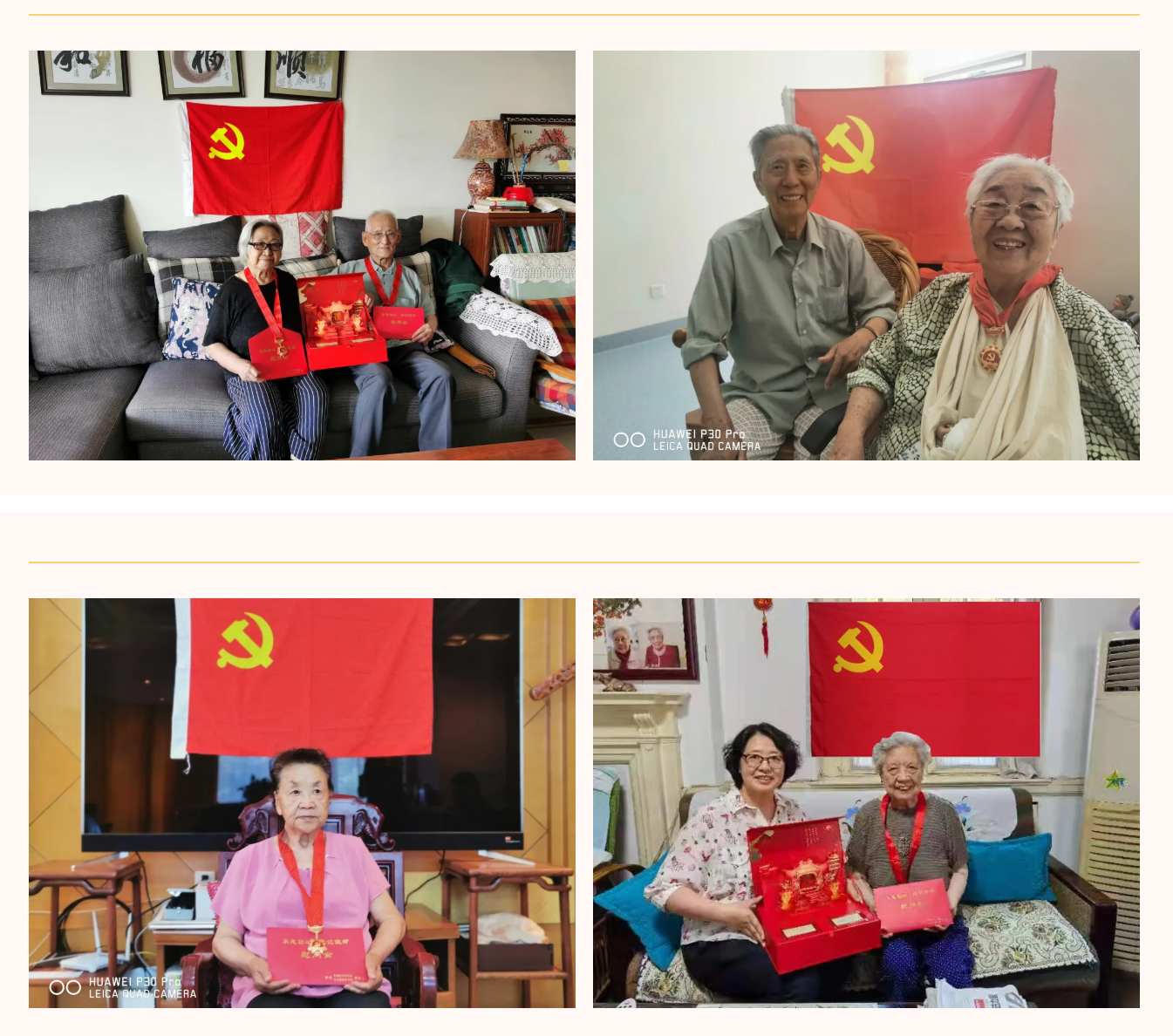 每到一位老党员家中,就为他们挂置党旗,佩戴党徽举行小型仪式,戴上“光荣在党50年”纪念章。纪念章上,红色与金色相衬,党徽、五角星、旗帜、丰碑、向日葵在灯光下闪耀,老党员们露出笑容,用手触摸着纪念章,脸上的皱纹里写满骄傲及欣慰,感谢党组织以这种特别的形式给予老同志无上的光荣感和使命感。他们表示,光荣在党50年,是初心不改、使命在肩的50年,是不畏艰险、奋勇当先的50年,他们将不忘初心、牢记使命,一生跟党走。