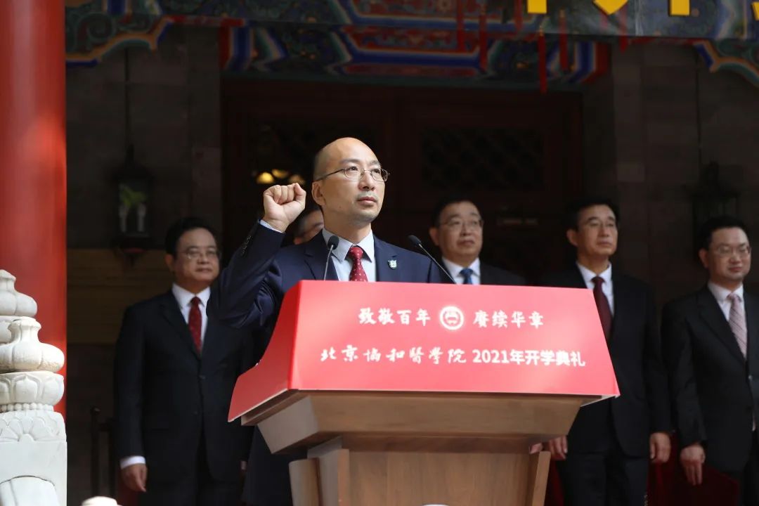 院校党委书记、副院校长姚建红主持典礼并指出,作为新时代的中国青年,协和学子要不畏难、不服输,始终牢记健康所系,以实现中华民族伟大复兴为己任,保持艰苦奋斗的前进姿态,于变局中开新局,在中国伟大征程中谱写新的篇章,为构建人类卫生健康共同体贡献协和力量。