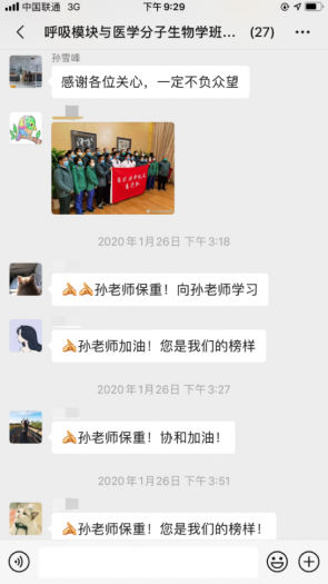 居家隔离的日子里,在认真学习理论知识之余,我们深深惦念着两位前线的师长。两位老师在紧张工作之余,仍然与我们分享前线的工作与生活。虽然厚重的防护服让人看着就窒息,但是透过屏幕,我们能感受到老师们的喜悦与兴奋,我相信老师们如此的乐观态度是他们发自内心的对工作的热情与对患者的责任。