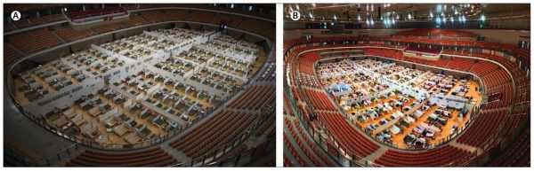 方舱庇护医院在中国武汉市首次启动建设,以应对2019冠状病毒疾病(COVID-19,以下简称新冠肺炎)疫情的暴发。“方舱”一词,在汉语语义中隐喻诺亚方舟,是从军队移动集装箱式野战医院借鉴而来[2,3],但方舱庇护医院指的是一个新的概念:通过将会展中心和体育场馆等大型公共场馆改建为医疗设施,专门集中收治大量新冠肺炎轻型、普通型患者,使之充分与家人、社区隔离开来,为其提供医疗照护、疾病监测与转诊、生活和社会活动的大型临时医院。