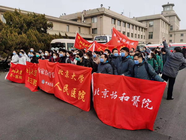 26日下午,中国医学科学院北京协和医院派出21人医疗队前往武汉,驰援湖北新型冠状病毒感染的肺炎防疫一线。26日12时,医院为全体援鄂医疗队队员举办了简短、隆重而庄严的仪式,全体院领导,所在科室主任、护士长、总支书记,以及相关职能部门负责同志参会。