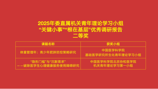 发挥优势,以小见大。中国医学科学院基础医学研究所生化青年理论学习小组积极响应“体重管理年”号召,聚焦青少年“均衡饮食营养,健康快乐成长”主题,走进北京第166中学附属校尉胡同小学开展健康科普和慢病防治调研工作,经科学严谨分析撰写了调研报告,力图实现青少年体重管理从“要我管理”向“我要管理”的积极转变。