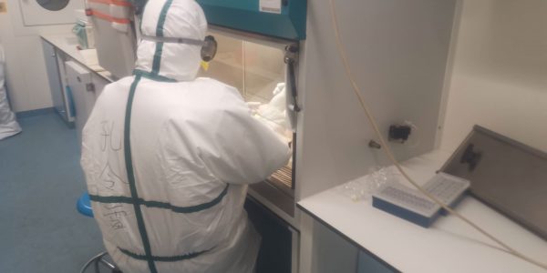 回想初来之时,就立即投入了紧张忙碌的工作中,搬运物资、布置实验室、标准操作规程培训,历历在目。在分配任务时,我自愿选择进P3实验室进行样本灭活的工作。这是项与病毒正面对抗的工作,具有很高的风险,但只有这项工作做好了,才能减少其他队员的危险。当时心中只有一个念头,我是共产党员,就应该做出这样的选择。