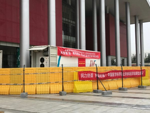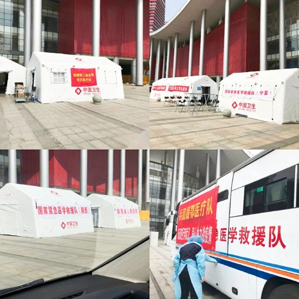 到达武汉后,正值疫情最严峻的时候,我们的任务是建立东西湖区武汉客厅方舱医院急需的新型冠状病毒核酸检测平台,为患者的出院检测服务,因为出院标准之一是连续2次呼吸道病原核酸检测阴性(后来工作中发现有部分患者检测5-6次后仍是阳性)。该方舱由武汉大学中南医院以及重庆、江苏、四川、陕西、宁夏、新疆生产建设兵团、中日友好医院等8支国家紧急医学救援队,5个当地医院,以及我们的中国医学科学院移动P3实验室组成,开放床位1461张。