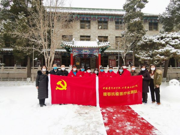 出发时间最终确定,尽管面对风险有一些担心,但更多的是激动,激动能和奋战在一线的医护并肩战斗!在出发前,整形医院各位领导为我举行了简单而庄重的出征仪式,工会、院办及研究中心的领导和同事们匆忙帮我准备各种生活、防护物资和药品。2月6日出发当天,大雪纷飞,东单三条9号院中王宝玺书记带领研究中心肖苒主任、党办、院办的工作人员亲自送行和叮嘱,院校党委对我们提出“零感染 打胜仗 凯旋归”的嘱托和期望。在去武汉的列车上,望着窗外星星点点的灯光,这一幕幕在脑海中跳动;同事群中不停的弹出各位同事对我鼓励和关怀的话语,这一切让我有了必胜的信心!