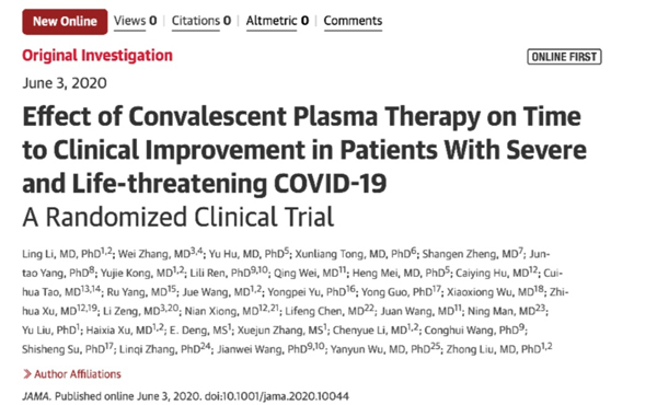 输血研究所刘忠团队在恢复期血浆治疗新冠肺炎方面取得重要成果