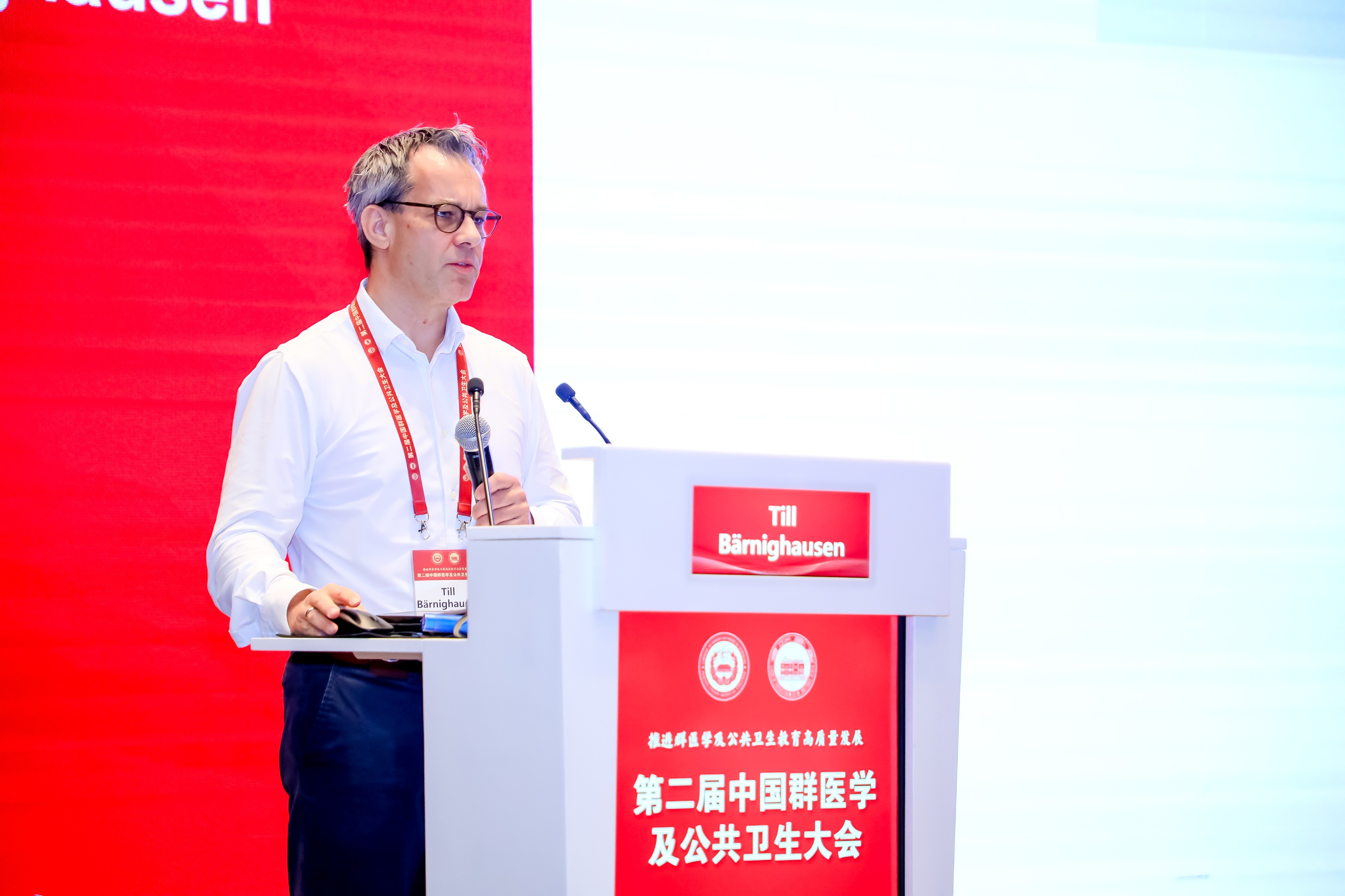 德国海德堡大学医学院全球卫生研究院院长Till Barnighausen教授作题为《Education in Population Medicine and Public Health》的报告,分享了全球群医学及公共卫生教育概况以及国际群医学及公共卫生教育经验。Till教授强调群医学教育需多学科合作,并提出“T型”科学家的培养理念,即在拥有深厚专业知识的同时,还需具备跨学科合作能力,呼吁培养具备创新思维和跨学科合作能力的科学家,以应对全球公共卫生挑战。