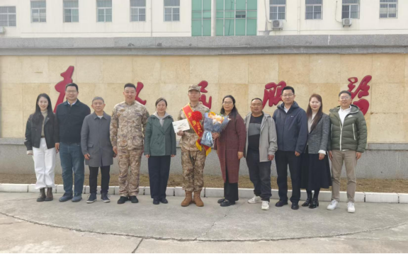 校领导一行向李佳和同学献上精心准备的鲜花、慰问信和慰问品,表达了全校师生对其携笔从戎、献身国防的由衷敬佩,祝愿他在军营淬炼成钢、守护家国安宁,把青春热血融入强军事业。