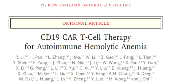 2026年1月15日,施均/熊海清团队在New England Journal of Medicine《新英格兰医学杂志》在线发表题为“CD19 CAR T-Cell Therapy for Autoimmune Hemolytic Anemia”(CD19 CAR T细胞治疗自身免疫性溶血性贫血)的重大研究成果,这也是我国在该领域发表的首篇NEJM论著,标志着院校再生医学学科在创新性细胞与基因治疗领域稳居国际领先行列。