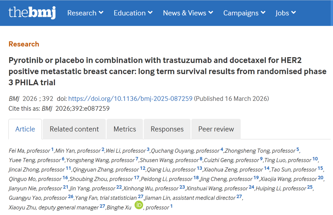 徐兵河院士团队:PHILA研究再度登顶BMJ,PyroHT方案夯实HER2阳性晚期乳腺癌一线治疗地位