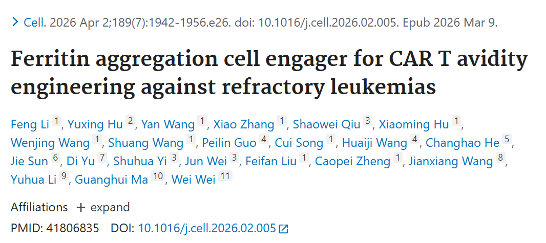Cell | 血液病医院王建祥团队与中科院过程所魏炜/马光辉团队、珠江医院李玉华团队合作研发新型CAR T细胞连接子